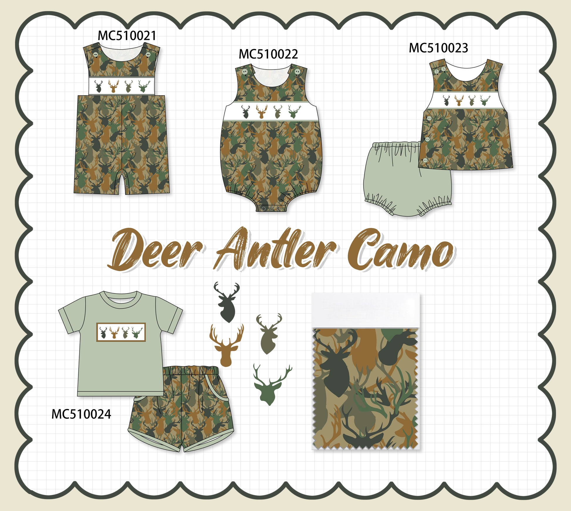 Camouflage deer antler embroidery collection
